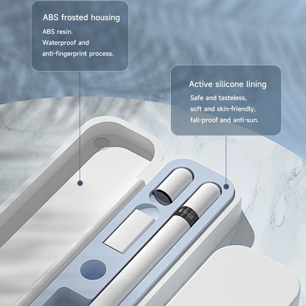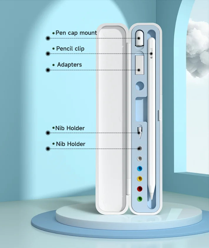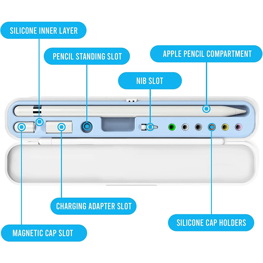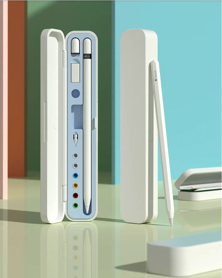 1.ALL-IN-ONE. This hard shell storage box can hold Apples Pencil 1st/2nd Gen, and oter small items, Like adapter, pencil cap, and extra pencil tip. Safe and neat.